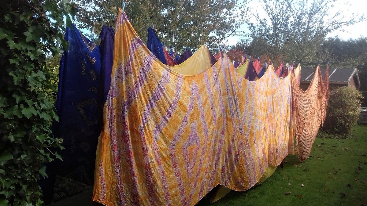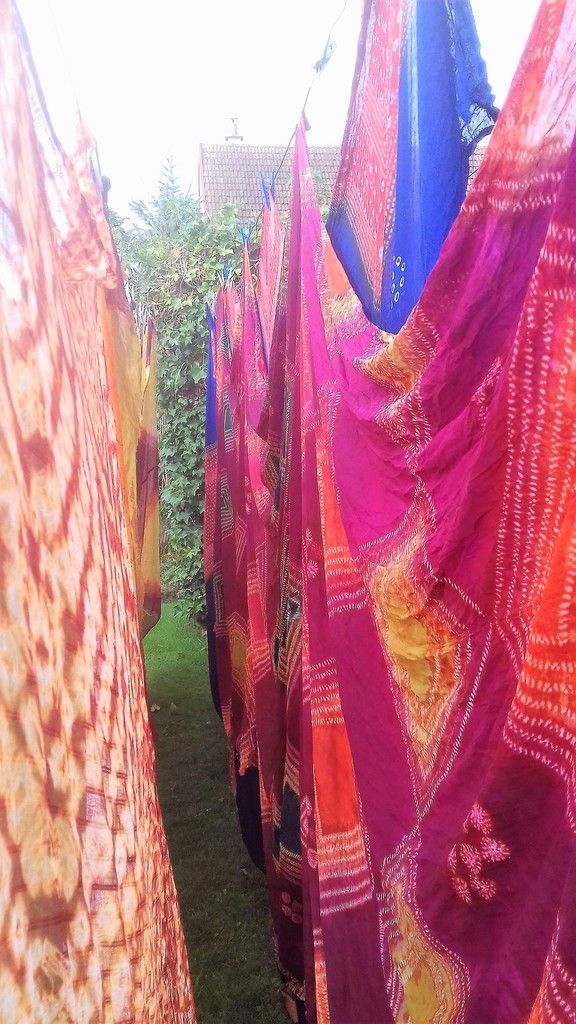 Une déco plus qu'originale ça c'est clair :). J'aime particulièrement les couleurs fuchsia et bleu de la 2e photo, elles sont magnifiques. Et que vont devenir tous ces voiles après avoir séchés, je serais curieuse de le savoir ;). En attendant passe une très belle journée. Bisous
