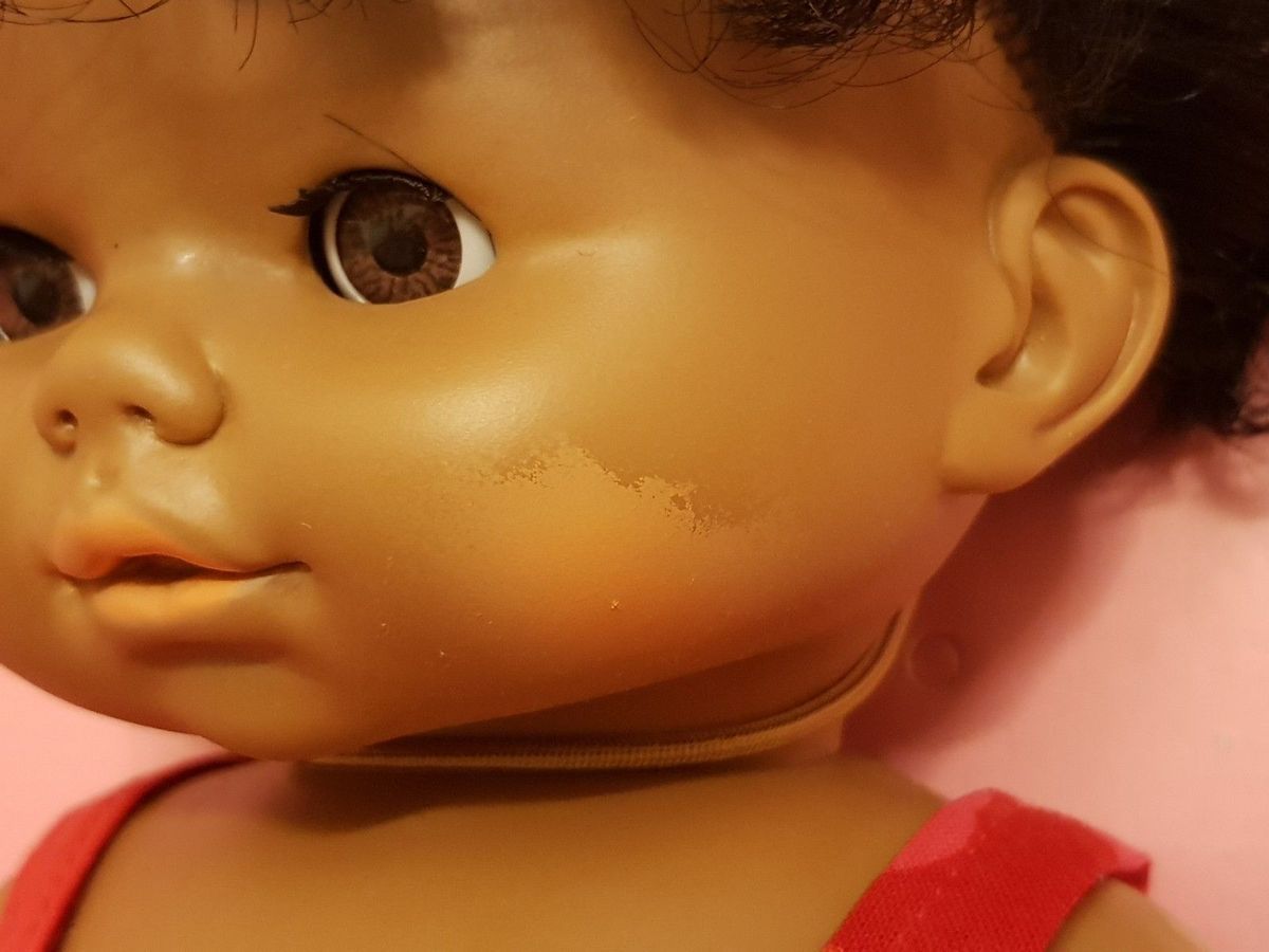 Je me suis procurée il y a quelques temps, une poupée Câlinette de Petit Collin, fort jolie mais avec un défaut de pigmentation sur une joue. Le vendeur était honnête et avait considérablement adapté son prix. J'ai prix conseil sur facebook et nombreuse sont celles qui ont répondu. J'ai aussi contacté Mr Serge, un homme délicieux qui restaure les poupées.