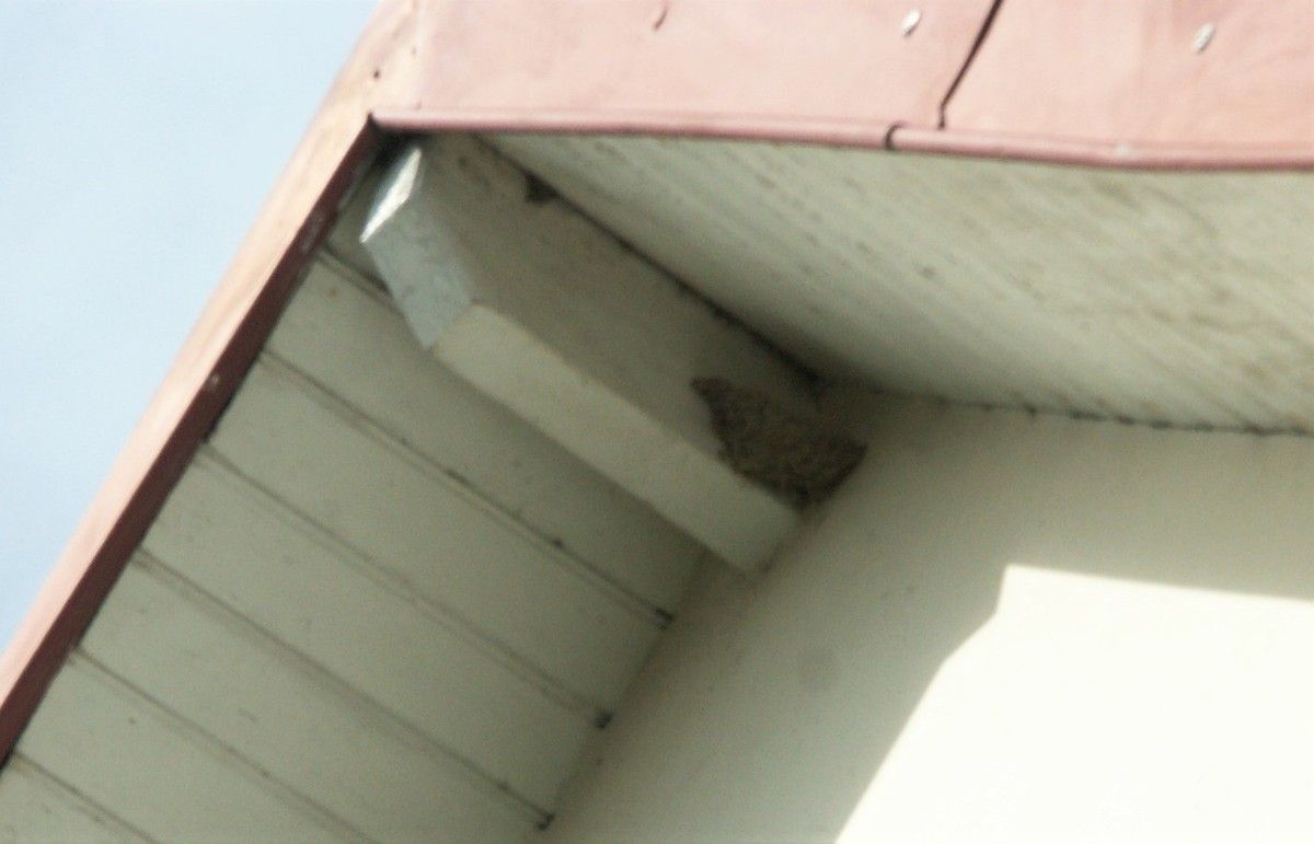 En levant la tête vers une fenêtre de l'étage, j'ai découvert tout à fait par hasard, il y a quelques jours, que des hirondelles avaient bâti leur nid sur le pignon sud de ma maison. Depuis quand le nid est-il là ? A- a-t-il été occupé ? Jje ne sais. Je guetterai au prochain printemps.