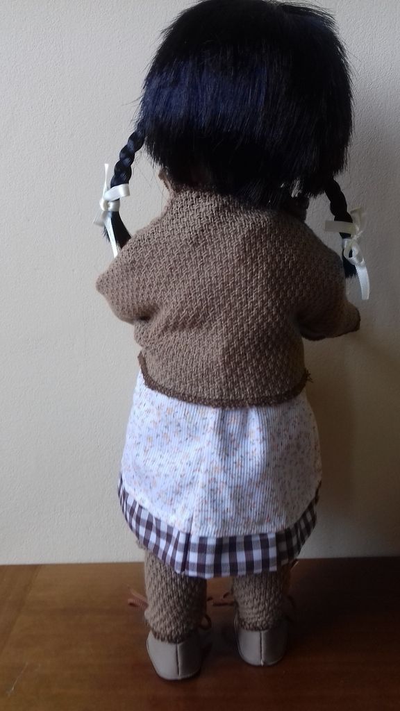 Poupée D'Nenes Marietta péruvienne, 34 cms, en excellent état. Tenue d'origine complète + une combinaison tricotée main.